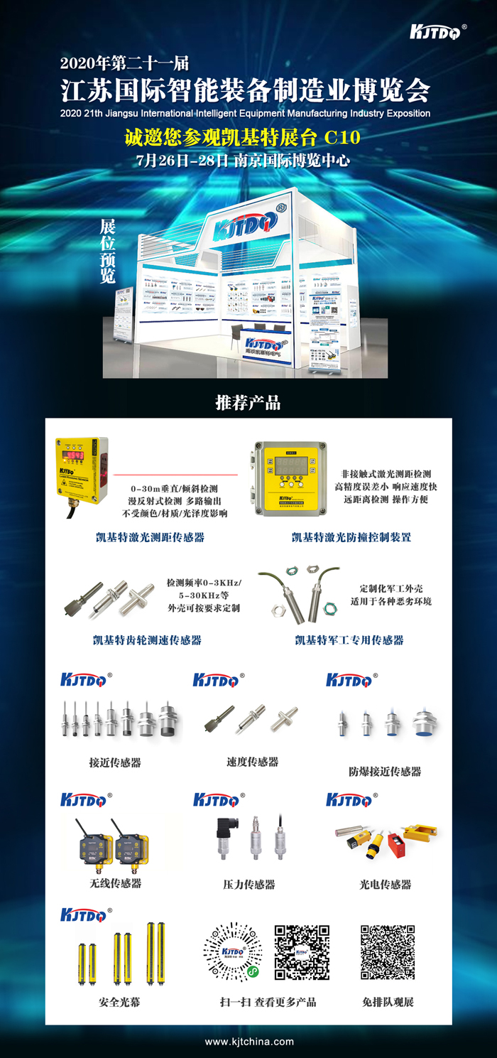 尊敬各位客戶: 您好!感謝您一直以來對我們的支持。南京凱基特電氣有限公司將于2020年7月26日-28日參加在南京國際博覽中心舉行的2020第二十一屆江蘇國際智能裝備制造業(yè)博覽會。大會將全面展示國內(nèi)裝備制造業(yè)先進(jìn)水平和發(fā)布前沿信息。凱基特在C10期待您的光臨!展會信息時間:7月26日-28日地點:南京國際博覽中心(燕山路199號)凱基特展位:C10