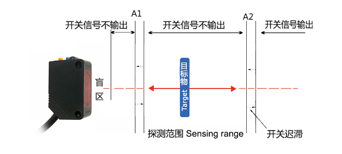 與依靠光量反饋檢測物體的傳統(tǒng)光電開關(guān)比較,使用TOF技術(shù)的KJT-FG30的光電傳感器有如下優(yōu)點(diǎn): 1:定位更精準(zhǔn) 2:減少物體表面顏色、弧度、環(huán)境等引起的干擾影響 3:最高可達(dá) 1000 Hz 的開關(guān)頻率 4:可穩(wěn)定檢測透明物體。 5:不受太陽光影響,可戶外使用。 6:實(shí)現(xiàn)更遠(yuǎn)的檢測距離(漫反射*遠(yuǎn)可達(dá)4 m!是市場上絕無僅有的激光光電傳感器) 7:便捷易用的操作方式,使得普通型號仍能快速進(jìn)行兩個開關(guān)點(diǎn)的設(shè)置   (1)傳感器內(nèi)部光源發(fā)送器發(fā)射脈沖激光光束 (2)測量 脈沖激光光束到達(dá)被測物體表面再反射回傳感器接收芯片 的時間差, (3)利用測得的時間差與光速的求出被測物距離(被測物距離=時間差*光速/2) (4)通過這個距離信息,光電開關(guān)便可判斷物體是否存在在設(shè)定的范圍內(nèi)