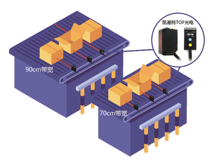 ▲一款產(chǎn)品搭建分支、合流搬運(yùn)線  ▲ 寬感應(yīng)距離,可用于各種輸送機(jī)線寬 以往,針對不同檢測距離需求,需配備不同的傳感器。但KJT-FG30具備30-4000mm的寬感應(yīng)距離,無需切換傳感器便可滿足不同感應(yīng)距離的需求。