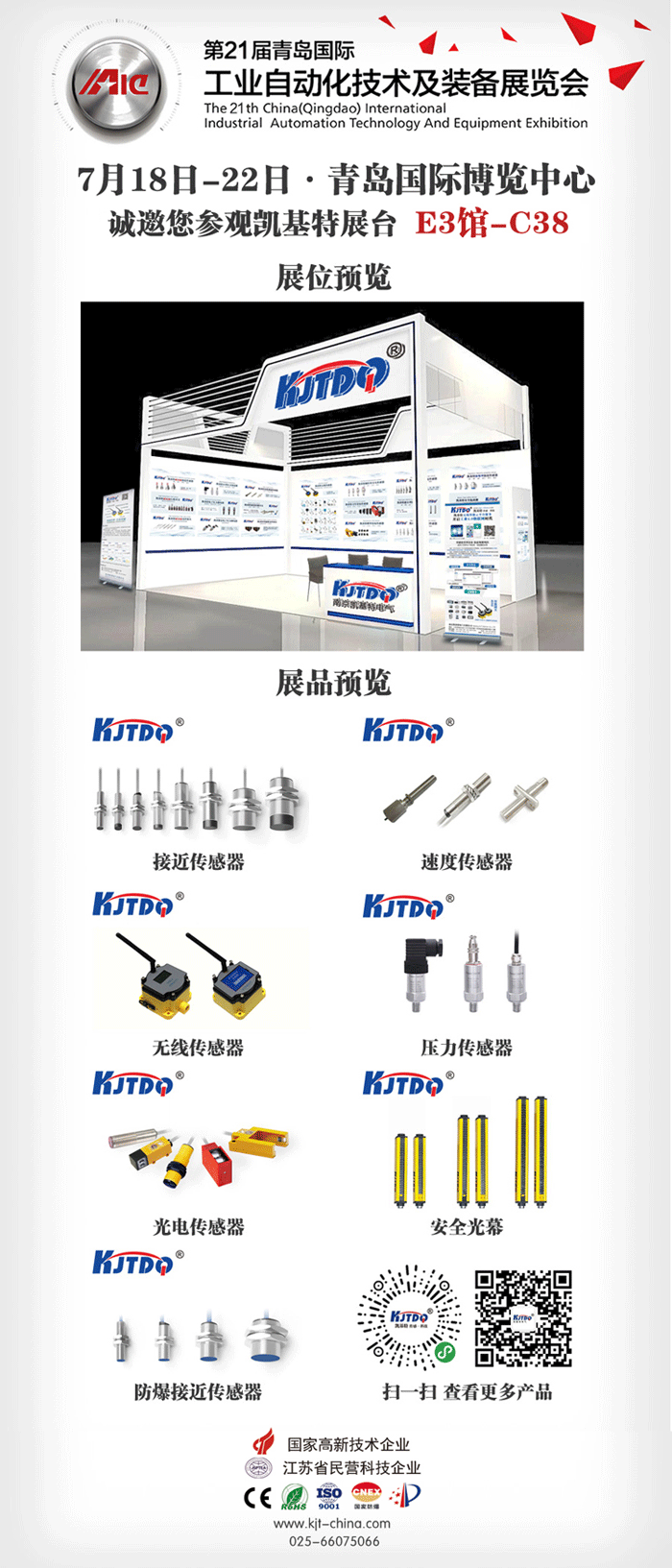 展會(huì)信息 時(shí)間:2019年7月18日--22日 地點(diǎn):青島國際博覽中心 凱基特展位:E3館#C38